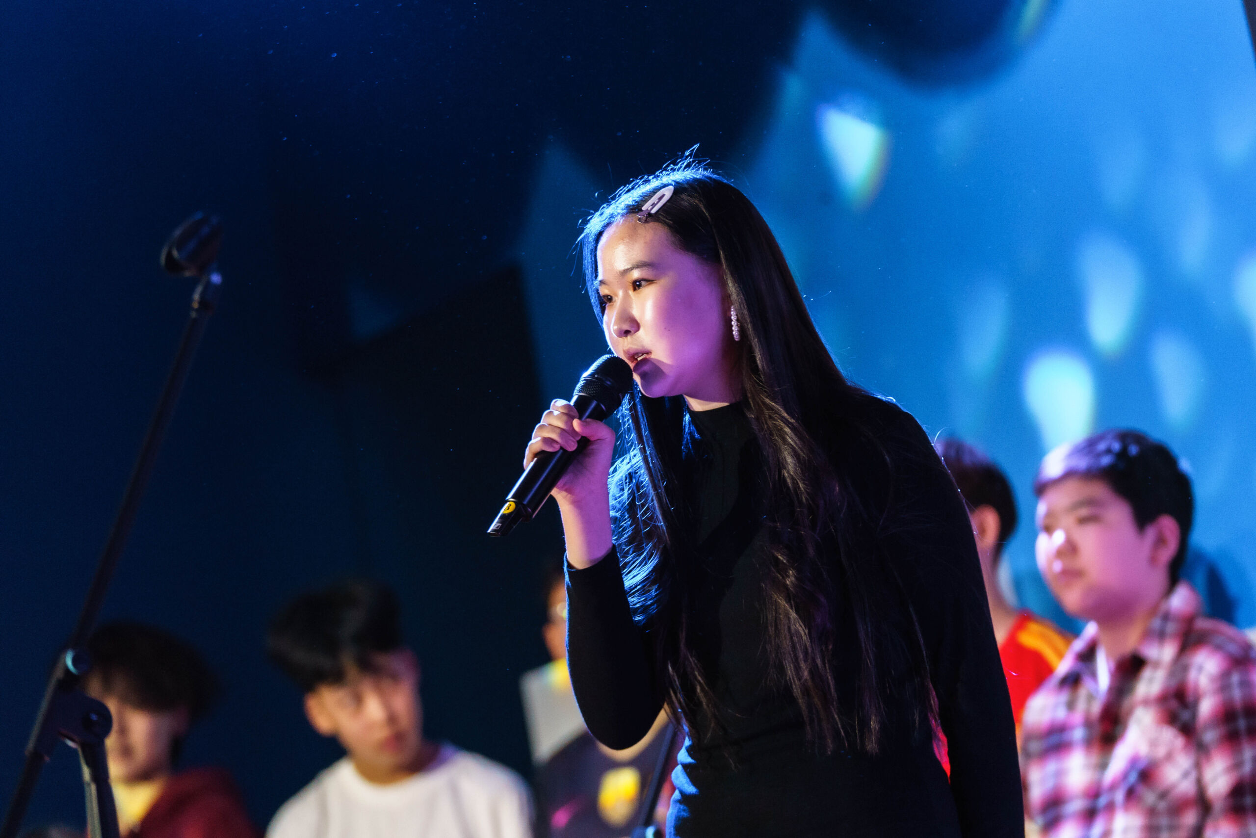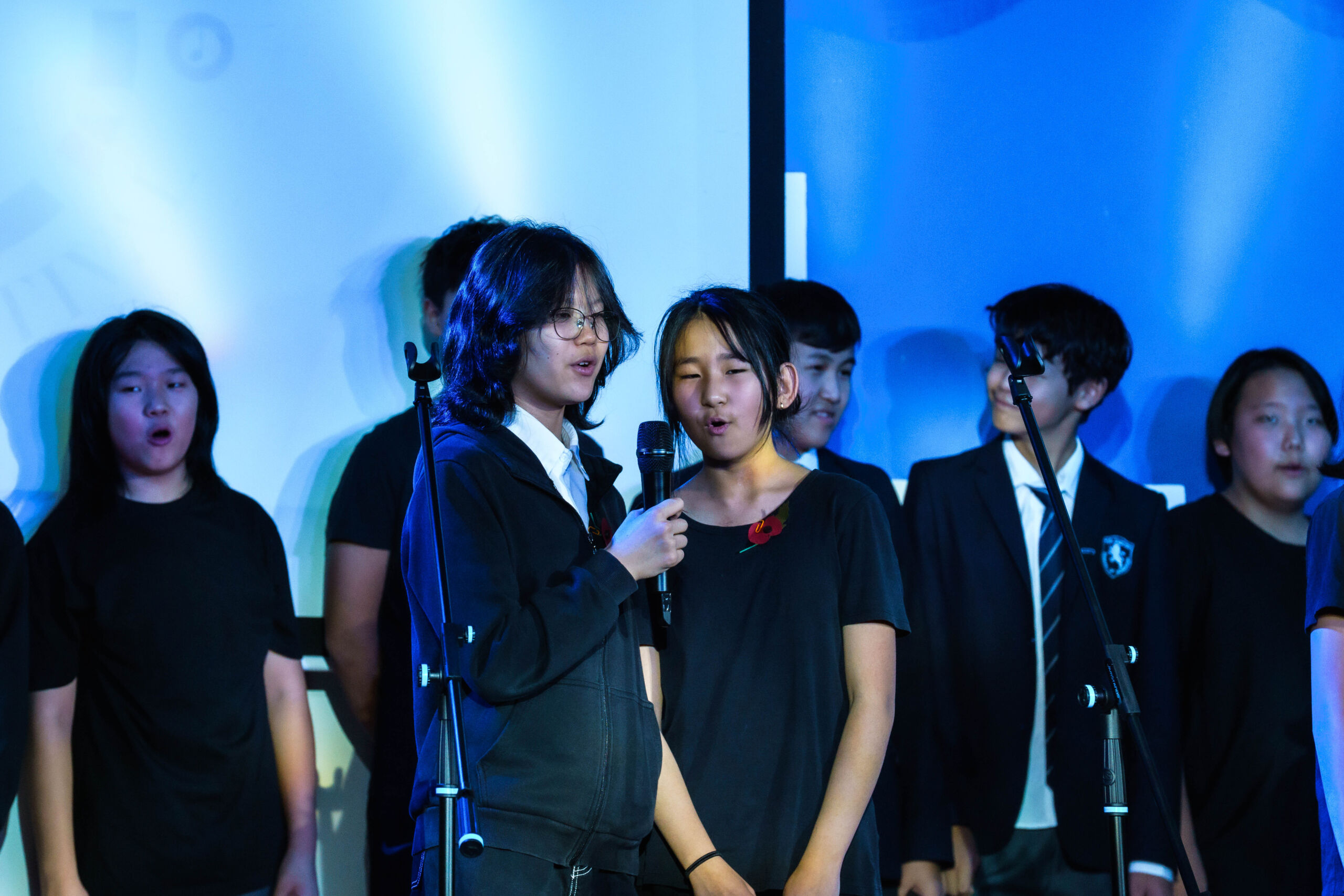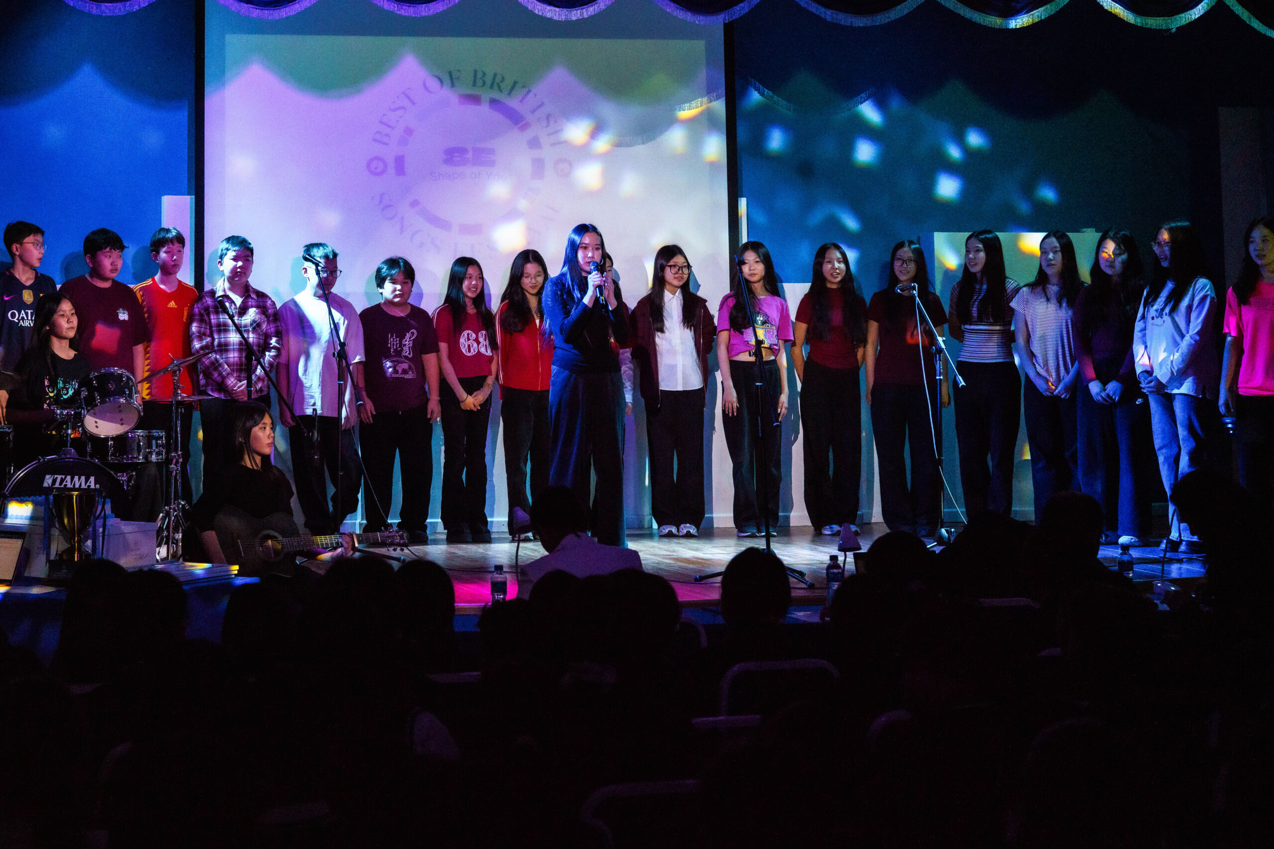 All students perform collectively, showcasing a variety of vocal skills and coordinated stage presentation.