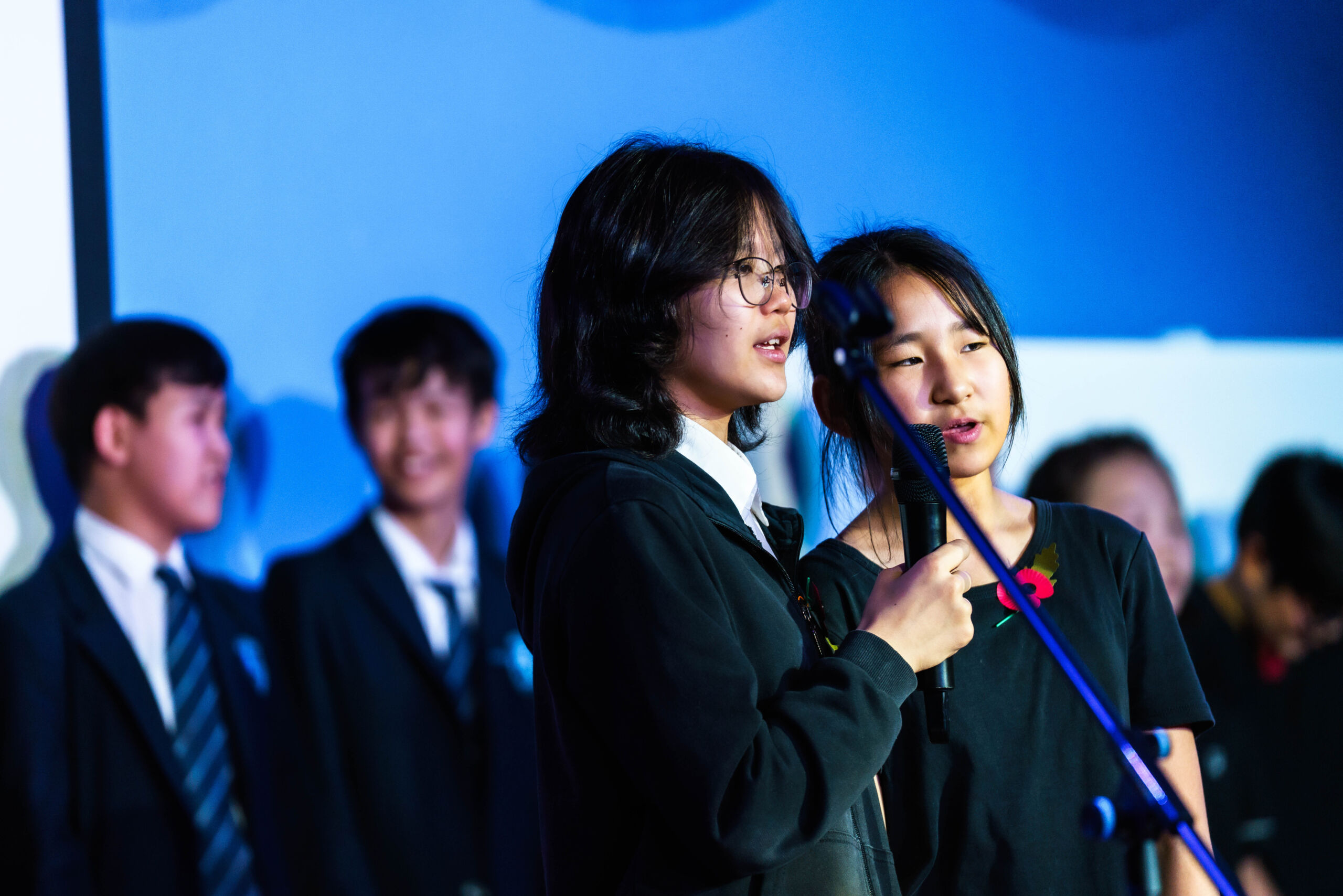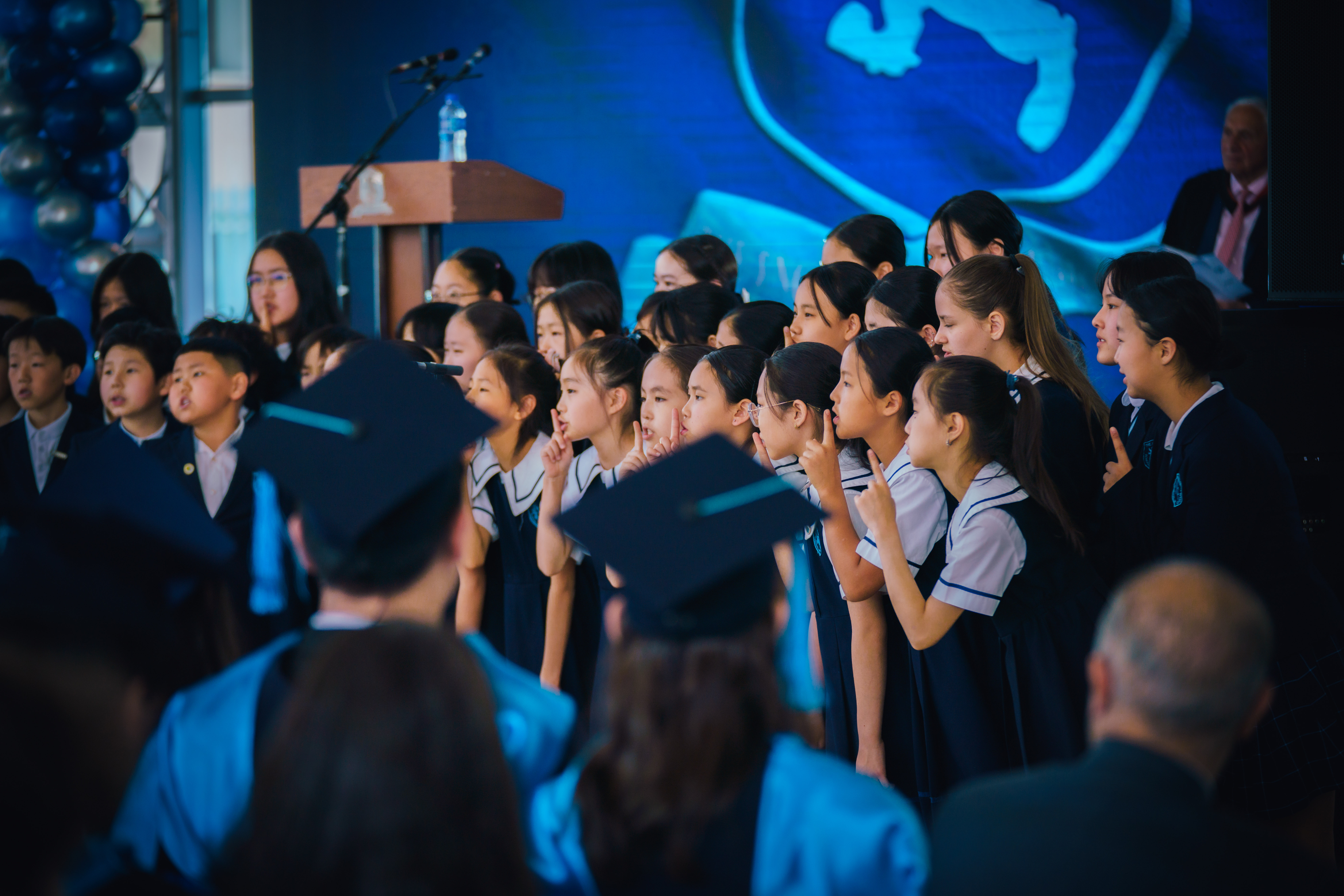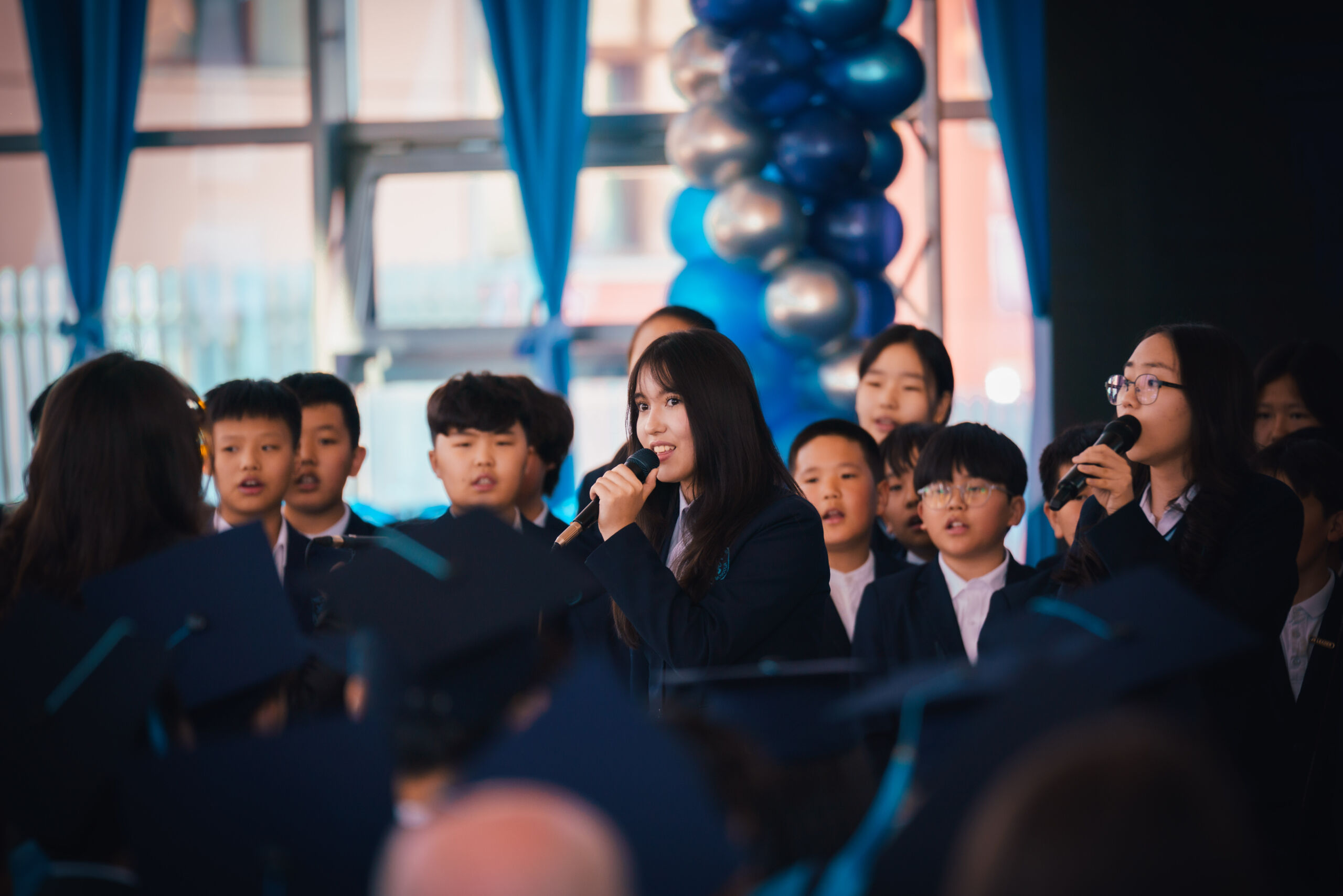 All students perform collectively, showcasing a variety of vocal skills and coordinated stage presentation.