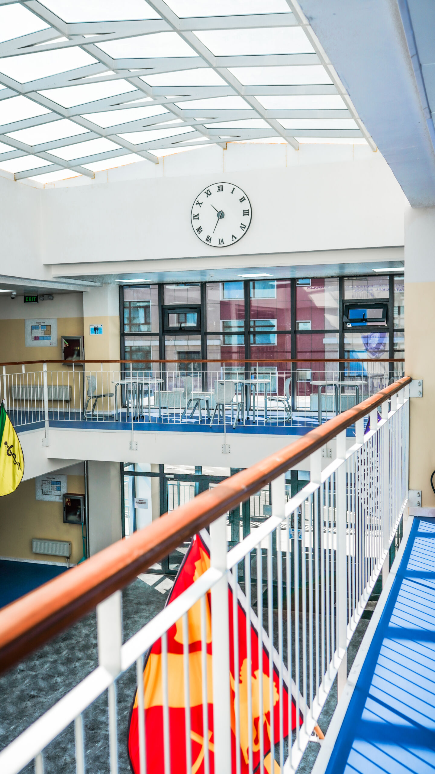 The building is an academic hub for ESM SIxth form students /Grades 11 and 12/. They have a full range of different spaces like science labs, art studio, concert studio, fitness room, dining hall and various study areas.