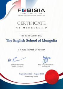 FOBISIA Membership Certificate_2022-23_The English School of Mongolia